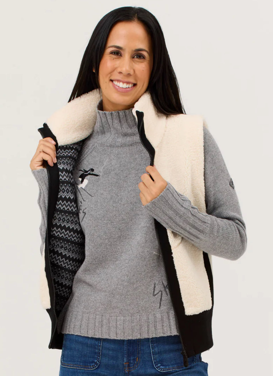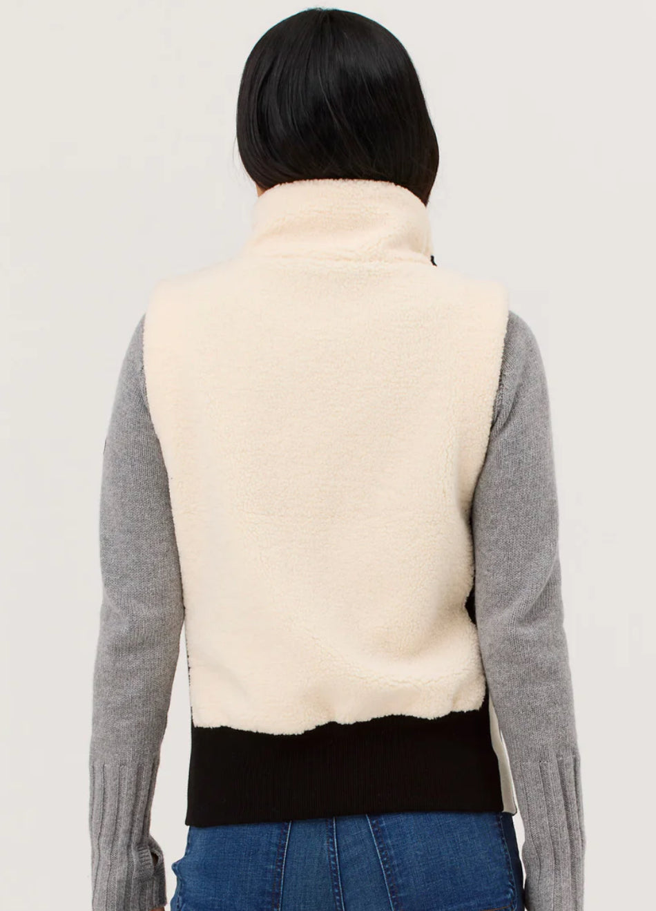 The Ember Vest keeps your core cozy while giving your arms the freedom to move—perfect for layering, traveling, or lounging in style. Berber fleece is a luxuriously soft texture that elevates any outfit, and the side stripes in a stretchy eco-friendly yarn provides style points. It's a cold-weather staple all season long.