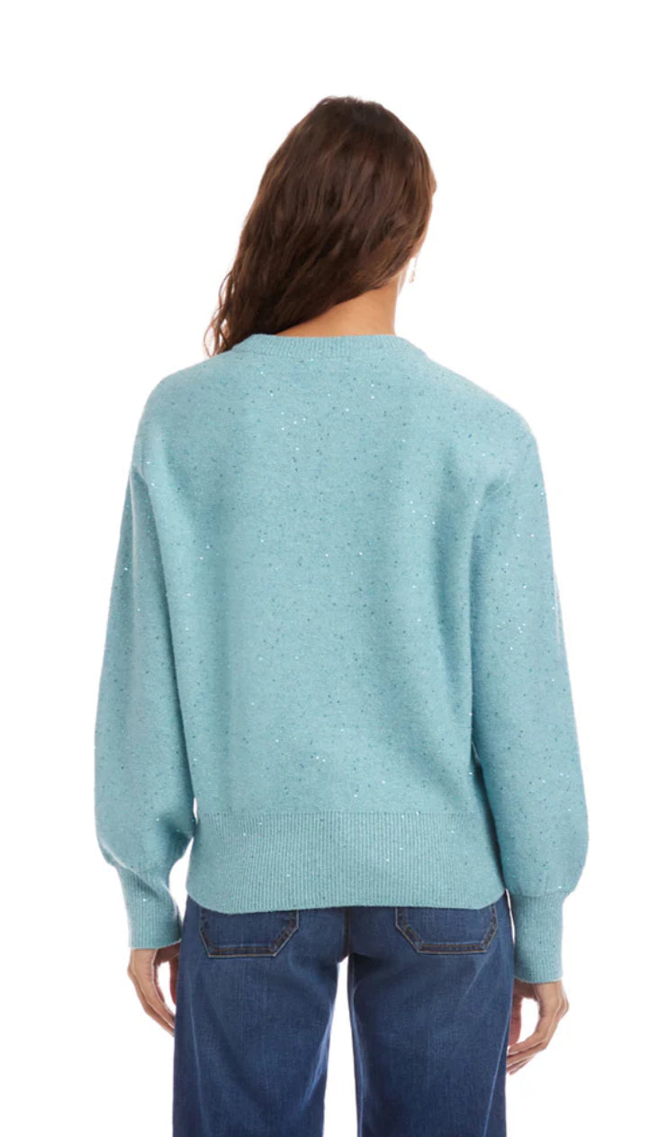 Shimmer meets comfort in this Sequin Crewneck Sweater, crafted from a soft knit embellished with all-over sequins for a touch of sparkle from every angle. Designed with a classic crew neckline, slightly dropped shoulders, long sleeves, and ribbed detailing at the cuffs and hem, it offers a relaxed yet refined silhouette that transitions effortlessly from day to night.