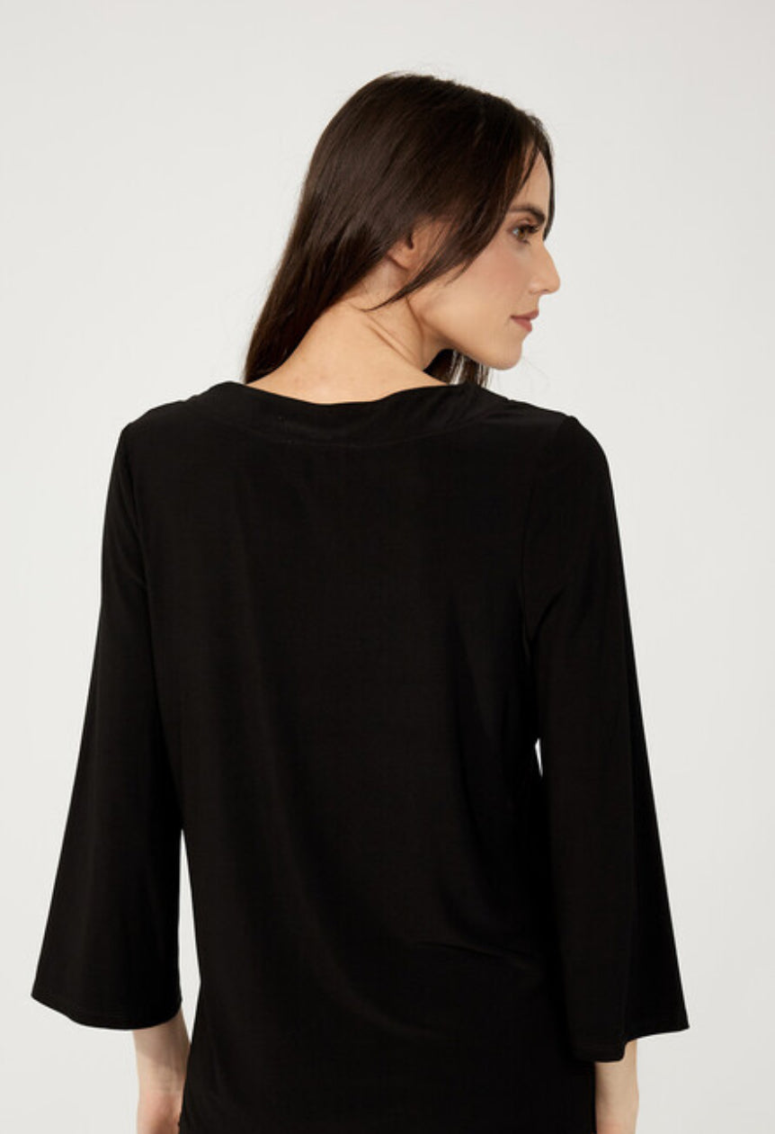 Step into effortless elegance with this Frank Lyman pullover. Featuring an asymmetrical scoop neckline adorned with jewel embellishments, this hip-length top offers a regular fit perfect for casual, office, or nightout occasions. The chic and plain design, combined with 3/4 straight sleeves, makes it a versatile addition to your wardrobe. Embrace comfort and style in one sophisticated piece.
